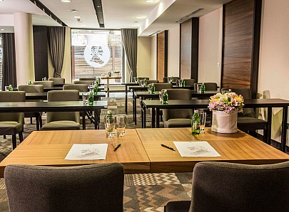 If you are looking for a place for your business meetings or for small private and corporate gatherings, banquet hall of the new hotel Constantine the Great is an ideal place for you. Located in city center, with the latest Hi-tech equipment, free Wi-Fi access and the natural daylight, our banquet hall can accommodate up to 80 people. Also it is possible to use parking, for an extra charge. We offer specially created packages as well as a great selection of menus and coffee breaks. Experienced and professional hotel staff will help you to organize a unique and memorable event for all your guests