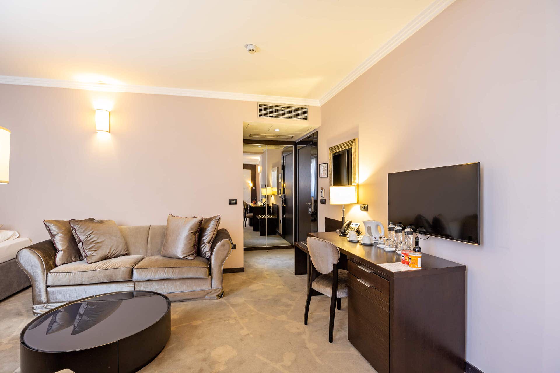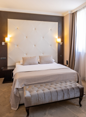 Naše porodične sobe (38m2) učiniće da se osećate opušteno u opuštenoj atmosferi kada se vratite iz dana. Luksuzne sobe su dizajnirane i opremljene po najvišim standardima, hvatajući sunčevu toplinu veći deo dana. Pobrinut će se da zaboravite brzi gradski tempo i prepustite se luksuzu. Porodična soba je opremljena sa jednim bračnim krevetom i jednim bračnim krevetom.